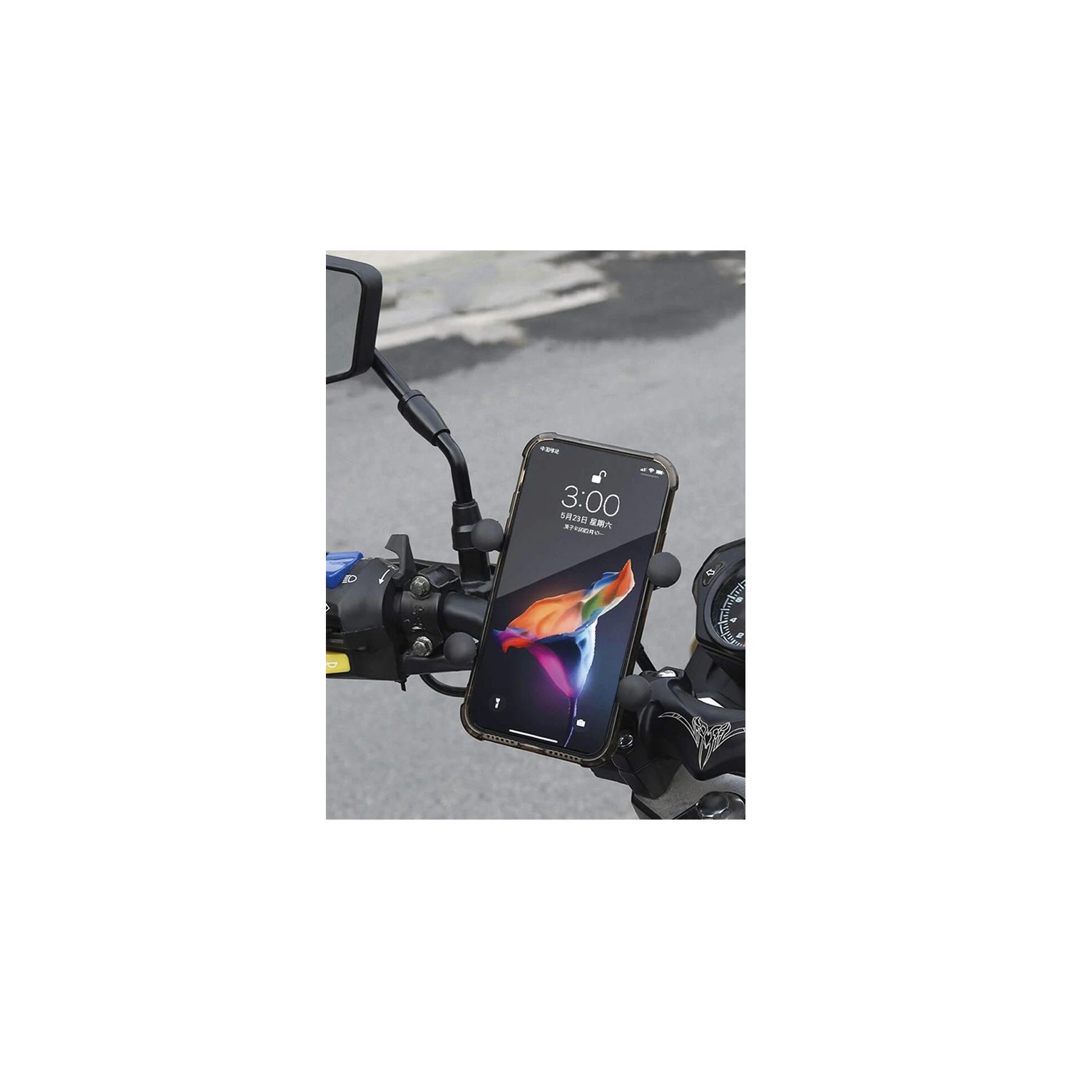 Soporte para smartphones, Para manillar de motocicleta, Rotación 360°, Accesorios de bloqueo, Compatible con celulares 4 a 6.5 pulgadas, Material PVC y agarres metálicos